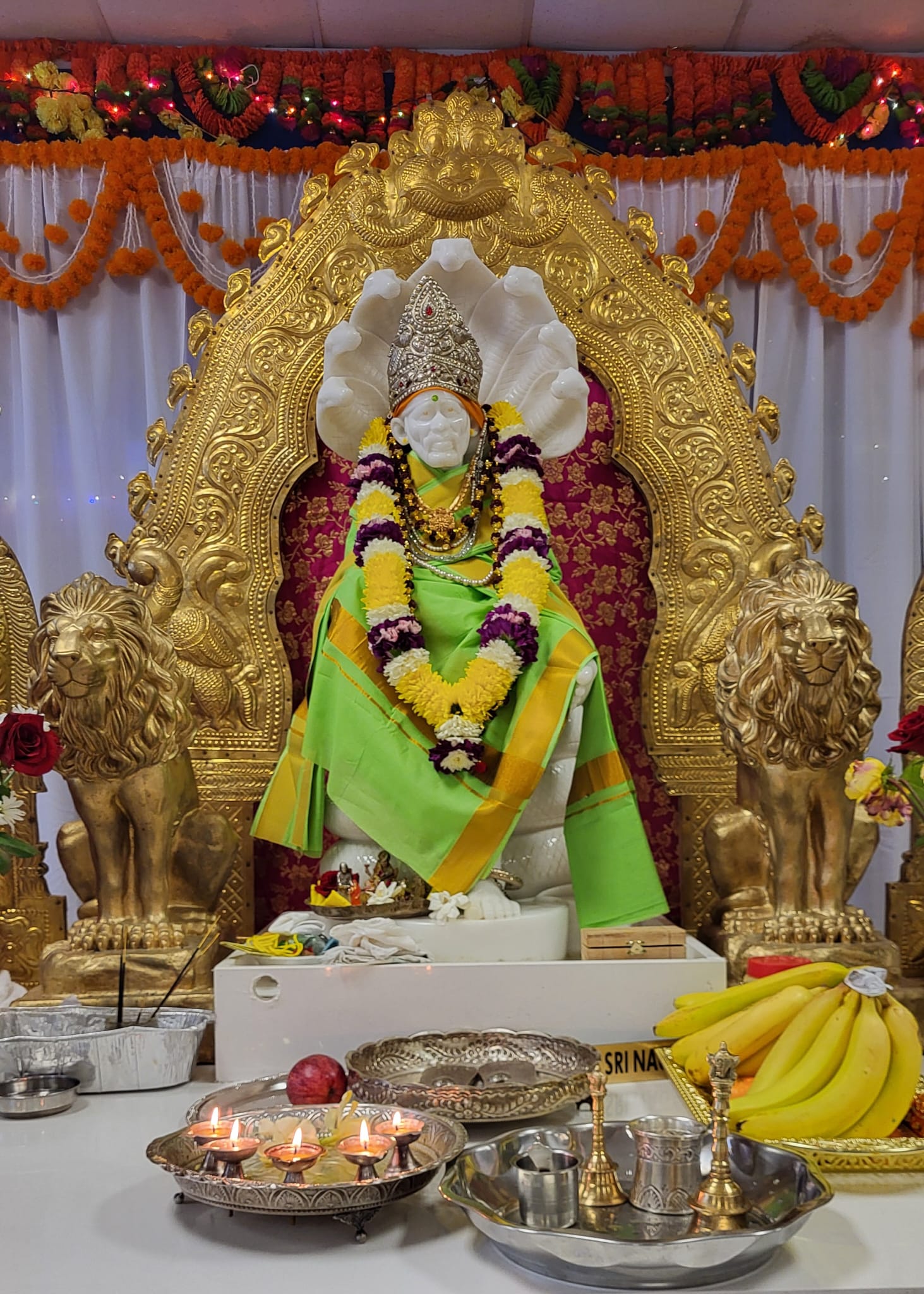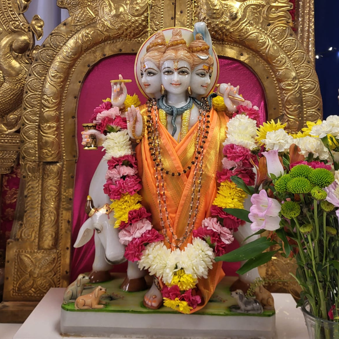 Guru Dattatreya is a revered Hindu deity considered the combined incarnation of the Trimurti-Brahma (creation), Vishnu (preservation), and Shiva (destruction). He is depicted as a paradigmatic yogi and ascetic, symbolizing the unity of all divine aspects and embodying supreme spiritual wisdom