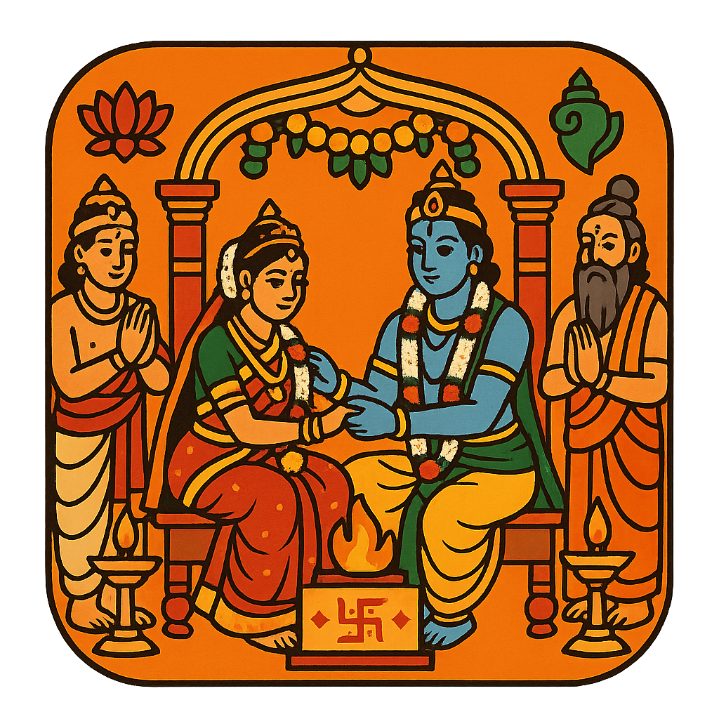 The ceremony symbolizes the ideal of marital harmony, faith, and righteousness. Lord Rama is revered as the embodiment of virtue and dharma, while Sita represents purity and devotion. Their union is considered the model for an ideal wedded life, as they remained steadfast together through both adversity and joy, inseparable like word and meaning or water and wave.